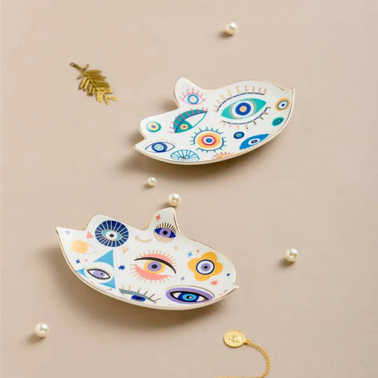 Plateau créatif en céramique avec motif œil bleu